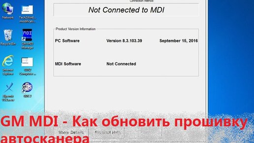 Проблема: После установки программы и драйвера GM MDI, подключение к прибору не происходит и появляется ошибка "not connected to MDI". 💡Решение: Возможно проблема из-за несоответствии версии прошивки адаптера и версии ПО. Для того чтобы программа GDS увидела MDI нужно обновить прошивку сканера на актуальную.