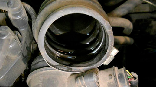 Те автолюбители, кто с мелким ремонтом и заменой деталей не ездят на СТО, а выполняет работы самостоятельно, наверняка замечали, что когда меняешь воздушный фильтр, то можно увидеть скопления масла в гофре. У кого глаз наметан, тот знает, что гофра немного наклонена, поэтому масло стекает в сторону наклона на впуск. Все было бы ничего, если бы при стекании оно попадало только на воздухофильтр (что тоже чревато последствиями), но недалеко от наклона сначала установлен датчик ДМРВ, и вариант попадания масла из гофры на датчик исключать ну никак нельзя...