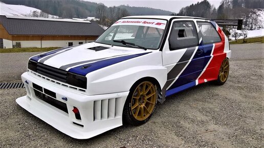 VW Golf Mk2 для подъёма на холм. Франц Пробст выступал в классе 1600 на атмосферном гольфе, но затем решил перейти на класс выше, чтобы конкурировать с двухлитровыми машинами. При этом он выбрал очень нестандартный путь. Двигатель построен на основе блока KR, объём 1.2 литра...