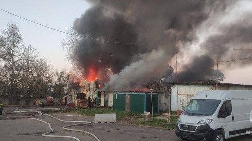 В московском Кунцево сгорел и рухнул склад автозапчастей