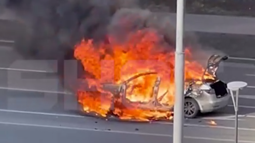В Москве горящую посреди дороги Tesla сняли на видео