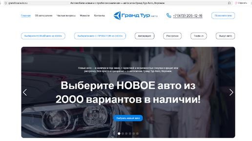 Гранд Тур Авто — это автосалон в Воронеже. Занимается продажей новых и подержанных автомобилей. В работе дилера найдены подозрительные моменты. Больше интересного — в нашем обзоре. В автосалоне на Остужева 62А в Воронеже можно купить новый или подержанный автомобиль. Проблема в том, что на картах по этому адресу находится другой автосалон — Тойота Бизнес Кар. Кроме того, данный адрес нам уже встречался, когда мы писали о дилере из нашего черного списка — Селект Авто. На фоне этого обещанные скидки выглядят, мягко говоря, неправдоподобно...