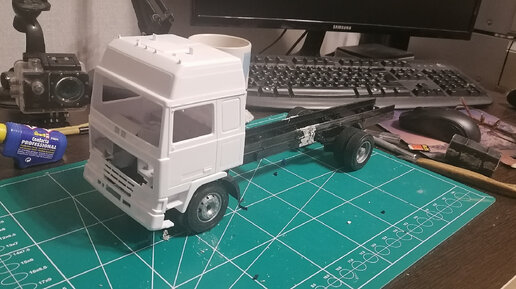 Всех приветствую! Собственно начал я рассказ о недавних пополнениях в моем модельном мире. А именно о грузовиках Вольво. А если быть совсем точным то в работе у меня сейчас один - это FH16 ранних годов выпуска. Так вот, продолжая разговор о сборке хочется отметить и деталировку этого красавца. Машина реально проработана до мелочей, а спешка при сборке только навредит данной модели. Надо понимать что данная модель это не модель на один вечер для сборку под стакан кофе.... Возвращаясь к раме: на фото выше можно понять разницу в длинне рамы...