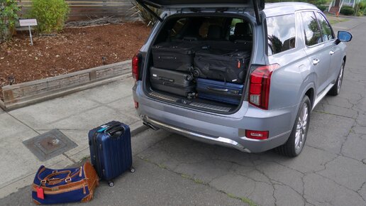 У Hyundai Palisade 2020 года 500 литров пространства позади его поднятого третьего ряда. Это больше, чем почти у всех трехрядных конкурентов кроссовера, но что именно это означает с точки зрения реального багажа? Ниже палисад с опущенным третьим рядом. В этой конфигурации есть 45.8 кубических футов пространства. Стандартно для этого Palisade Limited и дополнительно для SEL, сиденья третьего ряда поднимаются, опускаются и откидываются, нажимая эти кнопки ниже. Для пассажиров третьего ряда имеется кнопка для откидывания вперед...