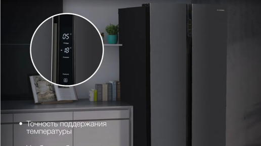 Двухкамерный холодильник Side-by-Side Hyundai CS4505F No frost, черный