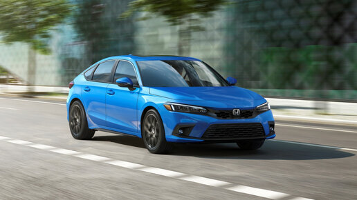 Спустя два месяца после премьеры Civic одиннадцатого поколения в кузове седан фирма Honda раскрыла аналогичный хетчбэк. Полными клонами четырёх- и пятидверная версии не являются: отличаются не только кузов, но и агрегаты, и оснащение. Хетчбэк Civic на четырнадцать сантиметров короче седана благодаря меньшему заднему свесу, но пропорции таковы, что разница не очевидна. Однако узнать пятидверку сзади легко: у неё разведённые по краям бампера патрубки выхлопа, есть имитация диффузора, а оригинальные фонари соединены диодной лентой стоп-сигнала...