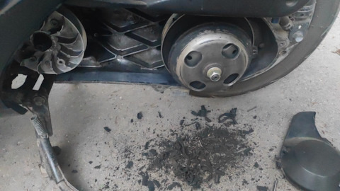 Пробег 41600 замена ремня вариатора. Не смотря на то, что ремень я в начале сезона осмотрел и ничего подозрительного не увидел, он таки порвался.