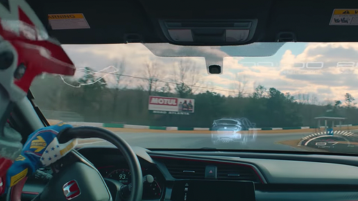 Компания Honda опубликовала достаточно необычное видео - гонку, в которой соревнуются два пилота автомобиля Honda Civic Type R 2018. Необычность его в том, что один пилот сидит в машине и едет по реальной трассе, а второй находится перед игровой установкой. Гонка, таким образом, не просто являлась виртуальной - она совместила виртуальную и дополненную реальности. На лобовое стекло гоночной машины с помощью специального проектора выводилась компьютерная "игровая" графика плюс 3D-изображение автомобиля соперника в голографическом стиле...