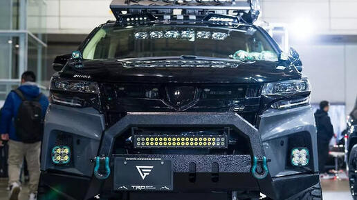 На Токийском автосалоне, где многие японские тюнинг-фирмы демонстрировали свои проекты, мастерская Double Eight представила необычный Toyota Alphard. Автомобиль получил множество модификаций, ориентированных на езду вне дорог. Фотографиями автомобиля с выставки поделился Carscoops. Спереди Toyota Alphard оснастили стальным бампером и защитой картера, «кенгурятником» и светодиодной балкой. На крыше появился большой багажник с шестью крупными фонарями. Минивэн укомплектован черными дисками с шинами Toyo Open Country R/T и лифтованной подвеской с новыми пружинами и амортизаторами...