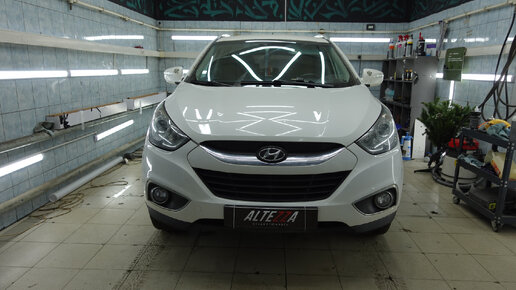 В работу к нам заехал автомобиль Hyundai ix35 на доработку света. В замен штатных галогеновых ПТФ будем устанавливать светодиодные Bi Led ПТФ Aozoom с функцией дальнего света, модель ALPF-02. По окончанию работ освежим фары и защитим их полиуретановой пленкой. Традиционно фото авто до начала работ: Приступаем к снятию бампера: В процессе подключения ПТФ к сети, столкнулись со следующей проблемой: когда авто стоит на зажигании, все работает корректно, а вот на заведенном двигателе, ПТФ мерцают и гаснут...