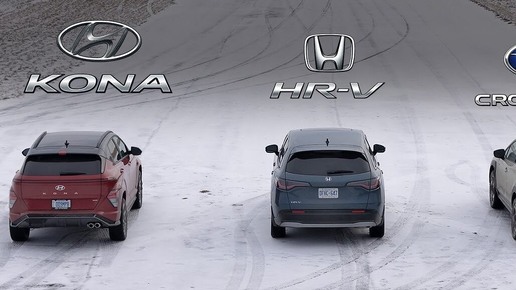 Subaru Crosstrek E-Boxer, Honda HR-V и Hyundai Kona N-Line зимняя гонка на полном приводе, кто лучше