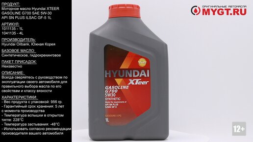 Моторное масло Hyundai XTEER GASOLINE G700 SAE 5W-30 API SN PLUS ILSAC GF-5 1L #ANTON_MYGT