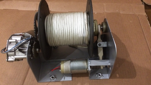 Лебедка якорная Представляю Вашему вниманию лебедку якорную. Технические характеристики 1. Напряжение питания 12 В. 2. Ток селеноида 3,4 А. 3. Масса поднимаемого груза 30 кг. 4. Средняя скорость подъема 15 м/мин. 5. Диаметр шнура - 6 мм. 6. Длина шнура - 100 м. (На фото – 30 м) Описание конструкции лебедки Лебедка состоит из каркаса, сваренного из листа толщиной 2 мм. Барабана с канатом и полумуфтой Мотора-редуктора с шестерней Соленоида Вала с полумуфтой и подшипником. А также вилки...