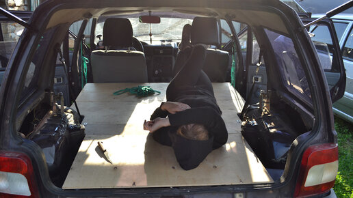 И вот завершилось строительство мини кемпера на базе ИЖ Фабулы. Собирал салон около двух дней. Первый день делал макеты и собирал пол. Во второй день собирал полочки. А на третий по мелочи. Пол (спальное место) сделано из фанеры 8 мм, а полочки из 6 мм. 8 мм очень даже достаточно. При этом есть рёбра жёсткости. Мы одни из первопроходцев по мини кемперам по Ижам.