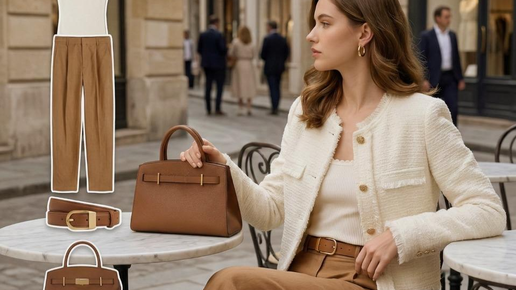 Как создать элегантный весенний образ, не тратя при этом целое состояние? Секрет кроется в умелом сочетании. Простые футболки, классические джинсы, лаконичные блузы, элегантные брюки и юбки — всё это верные помощники. Добавьте к ним пару стильных аксессуаров, грамотно подберите обувь, и вуаля - ваш обновлённый весенний гардероб готов. Эти 10 сетов докажут, что дороговизна образа — это не всегда про ценник, а скорее про вкус и правильный подход к составлению комплектов. Белые классические брюки и коричневый кардиган - спокойная и стильная база...