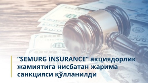 Сообщается, что в отношении страховой компании АО "SEMURG INSURANCE" были применены штрафные санкции. Отмечается, что применение штрафных санкций регламентировано Законом Республики Узбекистан "О страховой деятельности" и позицией 1 приложения к Положению о порядке применения штрафных санкций к страховщикам...