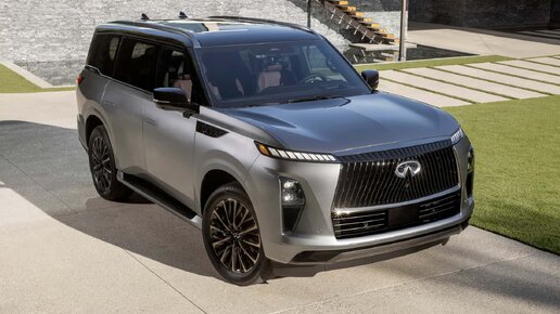Мы не будем тратить много времени на дизайн. По сути, это концепт Monograph в серийном исполнении, с его громоздким кузовом на старомодной лестничной раме, вытянувшийся от носа до хвоста на длину более 5,30 метра. Infiniti стремится также подчеркнуть и рост в высоту QX80, говоря об "анти-кромке" профиля с капотом, почти плоским спереди. Впрочем, смотрите сами. Как и в концепте Monograph, подсвечиваемый логотип Infiniti разместился на радиаторной решетке. Высокий пассажирский салон выделяется черной...