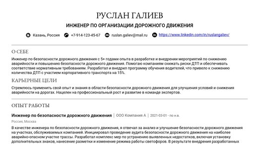 Пример резюме инженера по безопасности дорожного движения 2025 с советами