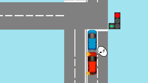 Вспоминаем ПДД можно ли водителю стоять под стрелку светофора если едешь прямо. Итак, водитель подъезжает к перекрестку по левой полосе, желая проехать его в прямом направлении. Однако сделать это он не успевает, потому что основной сигнал светофора загорается красным. Тогда водитель вынужден остановиться - перестроиться из-за сплошной шофер уже не может. В это же время загорается стрелка налево в доп.секции светофора. Но водитель продолжает стоять и ждать, пока загорится основной зелёный, чтобы проехать прямо...