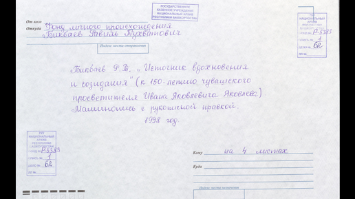 Бикбаев Равиль Тухватович Поэт, патриот земли башкирской «Источник вдохновения и созидания» (к 150-летию чувашского просветителя Ивана Яковлевича Яковлева). Машинопись с рукописной правкой Источник вдохновения...