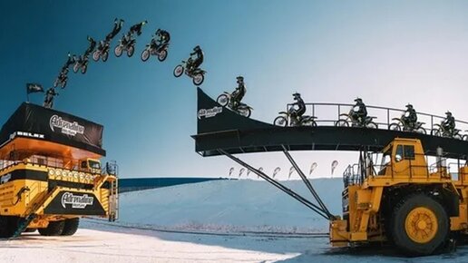 Спорят русский, немец и француз, чей мотоциклист с разгона перепрыгнет через большее количество установленных в ряд автомобилей. Француз: - Наш перемахнёт через 10 тачек! Немец: - А наш байкер - через 15! Русский: - А наш - через 8, зато без мотоцикла! Все наверняка видели трюк с перепрыгиванием автомобилей или автобусов на мотоцикле. Когда гонщик разгоняет свой байк и направляет его на рампу, прямо за которой установлены в ряд транспортные средства. Например в 2018 году Трэвис Пастрана в Лас-Вегасе установил мировой рекорд прыгнув через 52 автомобиля...