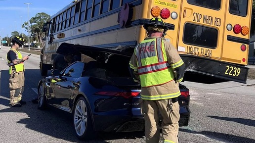 Во Флориде Jaguar F-Type ухитрился залететь на своем спорткаре ПОД школьный автобус! Несмотря на огромную силу удара, оба пассажира выжили в аварии, получив лишь незначительные травмы. В результате наезда задние колеса школьного автобуса на мгновение приподнялись – необычная картина при столкновении с таким низким транспортным средством. К счастью, во время аварии в автобусе не было детей. Согласно показаниям очевидцев, ученики вышли примерно за 15 минут до этого. Как это было можно посмотреть в ролике на нашем канале! У официальных дилеров появился компактный кроссовер Kia Sonet...
