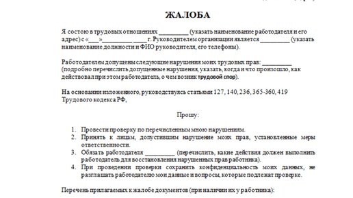 Образец и правила составления жалобы в трудовую инспекцию на работодателя.