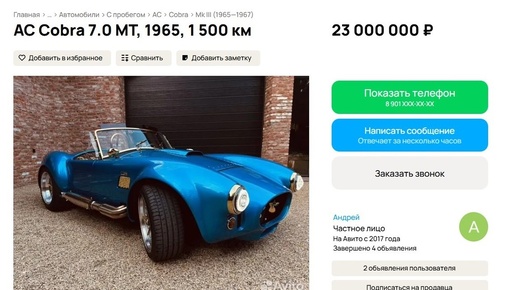 Легендарный Shelby Cobra из гаража Тони Старка выставлен на продажу в Воронеже
