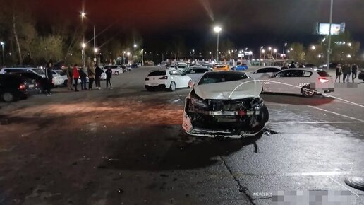 ДТП на парковке Татышев-парка. «БМВ» во время дрифта врезался в «Мерседес», который тоже дрифтовал (видео)