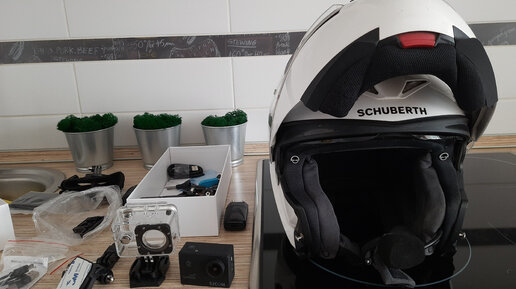 Решила я, что надо мне экшн-камеру повесить на шлем. И возможность менять ракурсы, и не убирать на остановках с мотоцикла (во время обедов, отдыха, когда от мота уходишь). До этого стояла на руле и в кадре всегда есть ветровик и зеркало. Других вариантов крепления просто нет. Дано: шлем-"композитор" (Schuberth C3 Pro) и камера SJ-Cam со стандартными креплениями. Хотела закрепить камеру справа (слева - гарнитура). Но геометрия шлема такая, что нереально там приклеить пластиковую площадку. Ну или можно, но уже почти на затылке...