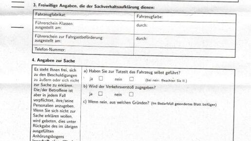 Если вы арендовали в Германии машину, а по возвращению в страну пребывания получили на домашний адрес штраф за нарушение ПДД во время вождения в Германии - возможно, вы нашли среди прочих документов в письме некую пустую анкету и задались вопросом - надо ли её заполнять. Ответ: Анкета дается на случай, если на фото в штрафе не вы, и вам требуется опровергнуть правомерность штрафа на ваше имя...