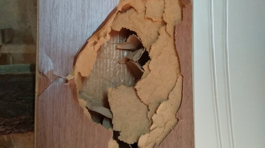 Лёгкий способ как отремонтировать дверцу шкафа, если сильно вырвало петлю из дсп