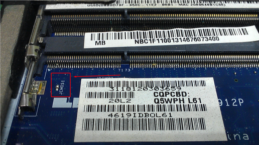 Отсоединяем аккумулятор и кабель питания Открываем крышку, под которой находится HDD и оперативная память Извлекаем планку(и) ОЗУ Находим 2 pin (контакта) с названием JCMOS1 зажимаем кнопку включения и замыкаем контакты на 2-5 сек...