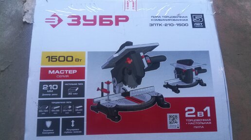 Здравствуйте! В этот статье расскажу о торцевой комбинированной пиле фирмы "ЗУБР" Данную пилу я приобретал для работы в гараже и на даче. Мне она понравилась тем , что сочетает в себе, как торцевую пилу ,так и циркулярную. Да у нее не очень большая глубина пропила как циркулярной пилы , всего 30 мм, но для меня этого в полне достаточно. И так , пожалуй начнем о комплектации. Данная пила поставляется в картонной коробке, которая имет размеры 440 х 420 х 317 мм. Комплектация : Торцовочная комбинированная пила; Пильный диск; Удлинитель стола - 2 шт...