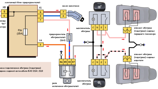 Схема подключения обогрева передних сидений автомобилей ВАЗ 2113, 2114, 2115