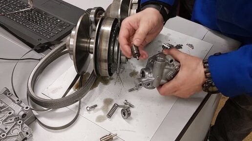 Здравствуйте, уважаемые читатели!! Многие автолюбители до сих пор не признают вариатор и выбирают автомобиль с обычной гидротрансформаторной АКПП. Почему многие так не любят вариатор? Чтобы разобраться в этом, нужно понимать, как устроен вариатор. Давайте посмотрим на картинку Вы видите, что металлический ремень зажат между двумя металлическими дисками. Один диск ведомый, другой соответственно ведущий. Ремень зажат между дисками так сильно, что он не должен проскальзывать. Если это случается, говорят, что коробка буксует...