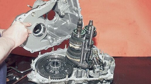 Коробка передач изменяет крутящий момент, который передается к ведущим колесам от двигателя, в результате чего обороты двигателя держатся в правильном диапазоне. Данный узел переносит большие нагрузки, поэтому со временем выходит из строя. Прежде всего, следует слить все масло, чтобы начать разборку коробки передач. Затем открутить болты, держащие нижнюю крышку и снять ее, не испортив прокладку. Следом, нужно открутить эластичную муфту (три болта) и вместе с пружиной ее вынуть. Затем нужно вытащить механизм переключения передач, который крепится тремя гайками...