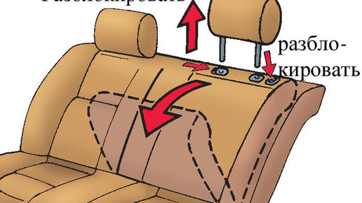 Разблокируйте спинку сиденья и наклоните. Если предусмотрены подголовники сиденья, то перед тем, как сложить сиденье, снимите подголовники. При складывании спинки заднего сиденья увеличивается внутреннее пространство багажного отделения (порядок загрузки см. в подразделе 1.5.54). При необходимости можно складывать спинки по отдельности. * При восстановлении положения спинки заднего сиденья убедитесь в отсутствии перекручивания ремней безопасности, а также в том, что ремни не зажаты спинкой и ими можно воспользоваться в любой момент...