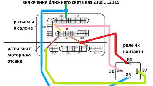 Схема к видео ваз 2114, 15 включение света от генератора