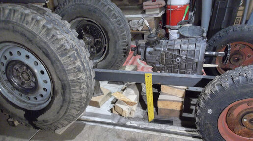 Здравствуйте, дорогие читатели! "Шоу маст гоу он" - как говорил Фредди. Дошло дело до рамы! Она будет выполнена из проф. трубы 40Х60мм. Возникла дилема - как крепить мост? Над рамой или под рамой? Каждый вариант имеет свои плюсы и минусы. Если рама будет над мостом, нагрузка на крепление моста будет меньше, клиренс больше. Но тогда поднимется центр тяжести, что снизит устойчивость к опрокидыванию. Станет больше излом кардана. Да и забираться на трактор будет неудобно. Во втором варианте крепление моста работает на разрыв, снижается клиренс, но повышается устойчивость...