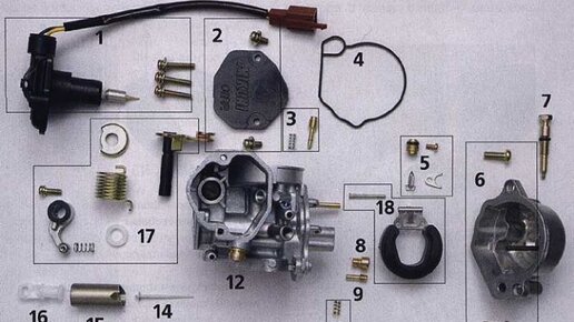 Пошаговая инструкция по ремонту скутера Suzuki Sepia ZZ, который не запускается: Купил новую ЦПГ, установил. И опять всё тоже самое. Купил ремкомплект карбюратора для suzuki ad50, схожий скутер по железу. На схеме цифра 14 -эта игла всему виной! Поставил новые жиклеры и поменял уровень иглу качества смеси (ниже стопорное кольцо на 4-й отметке)...