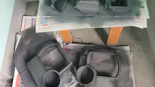 Приступаем к покраске. Сначала наносим грунт в два слоя с перерывом на сушку между слоями в 15 минут. Процесс увлекает, но не забудьте перчатки и респиратор, газеты не жалеть: В перерывах на сушку, что бы не терять темп, принимаемся за подготовку к окраске внутренней части фары. Я решил оставить неокрашенной окантовку линзы и три полоски. Чем больше ваша фантазия вам нарисует, тем дольше и кропотливей придется готовить "внутрянку" к покраске. Нужно отметить тот факт, что конечно лучше было бы разобрать...