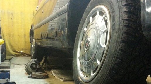 Всем привет! Сегодня я расскажу о поломке своего автомобиля. Одним днем у машины начало подводить сцепление. Думаю, обойдусь пока двойным выжимом и перегазовкой. Но это был не самый лучший вариант, так как на следующий день я не мог включить даже первую передачу. При этом вилка двигалась, как и должна. Решил я загнать автомобиль в гараж и разобраться с проблемой. Для своего удобства под заднее колесо подставил подкладку, и вывесил диагональ. Двери при этом открылись легко. И сейчас я расскажу, как я снимал КПП без ямы...