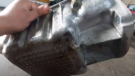 Сегодня ремонтирую свою Ладу Весту, ремонт получается очень интересным. Машина с пробитым картером двигателя. Отверстие небольшое, решил его заварить. Начал снимать. По периметру болты с резьбой М6, ключ на 10 мм. Легко все открутилось. Сбоку есть еще 2 болта, которые крепятся к коробке передач. Болты открутил, прокладки нет, поддон приклеен на герметик. Открутили болтики, начали отдирать – не идет. Выяснилось, что еще есть 2 болта вот здесь. Но самое интересное – чтобы их выкрутить, необходимо снять коробку передач...