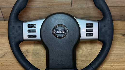 Перетяжка руля и ручки КПП Nissan Pathfinder в экокожу цвета антрацит. На ваше усмотрение можем добавить нулевую метку, яркую нитку, вставки из алькантары, псевдоперфорации, перетянуть подушку, сделать утолщение, покрасить пластик, восстановить оригинальный материал и даже установить подогрев...
