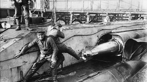 Пока торпеды пускались из аппаратов, расположенных вне прочного корпуса, загрузить их было конечно проще: Наша подлодка с аппаратами Джевецкого: А вот немцы бодро запихивают её ногами: Хотя возможно, снимок сделан для прикола, а на самом деле торпеда затягивается в аппарат лебёдкой, тросом, закреплённым за рым на носовой оконечности торпеды. Французы зачастую шли своим особым путём и долго применяли поворотные торпедные аппараты, тоже расположенные вне прочного корпуса. На снимке такой торпедный...