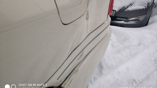 Вот такой неприятный сюрприз случился на парковке. От удара в бампер помялось заднее крыло... След контакта виден на бампере. Вот так выглядит вмятина. Сверху мы видим деформации. Но это только видимые фрагменты. Основное замятин находится под накладкой и под бампером. Снимаем накладку и частично опускаем бампер. Так же для ремонта потребовалось снять задний фонарь. Выравниваем металл. Краску при этом сохраняем. 4 часа работы позволили привести крыло вот в такое состояние...