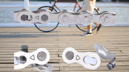 Для этого возьмом гайку на 10 и молоток. Затем гайку подкладываем под вьулку и бьем по тихоньку сверху молотком. Она чуть чуть вылезит., далее берем гвоздик и стучим по нему так чтобы вылез клин, но не до конца, чтобы в дальнейшем цепь юыло проще за клепать...