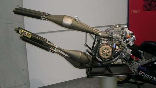 Перейдем к следующей обширной теме, к 4-тактным бензиновым ДВС. Но для начала пара дополнений к предыдущей теме по двухтактникам. Про мощностной клапан. В процессе совершенствования конструкции двухтактников, инженеры пришли к использованию полуволновых резонаторов, как самого эффективного типа резонатора в выхлопной системе двухтактника. С его помощью удалось получить просто нереальные показатели литровой мощности, так, на мой взгляд самый безумный двухтактный мотор, созданный человеком, это Honda...