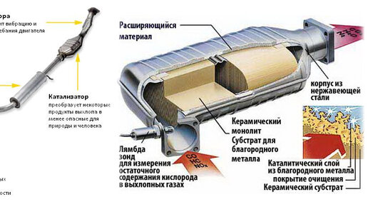 Глушитель расположен сразу после катализатора или сажевого фильтра для бензиновых и дизельных машин соответственно. В большинстве случаев в системе используется два компонента: